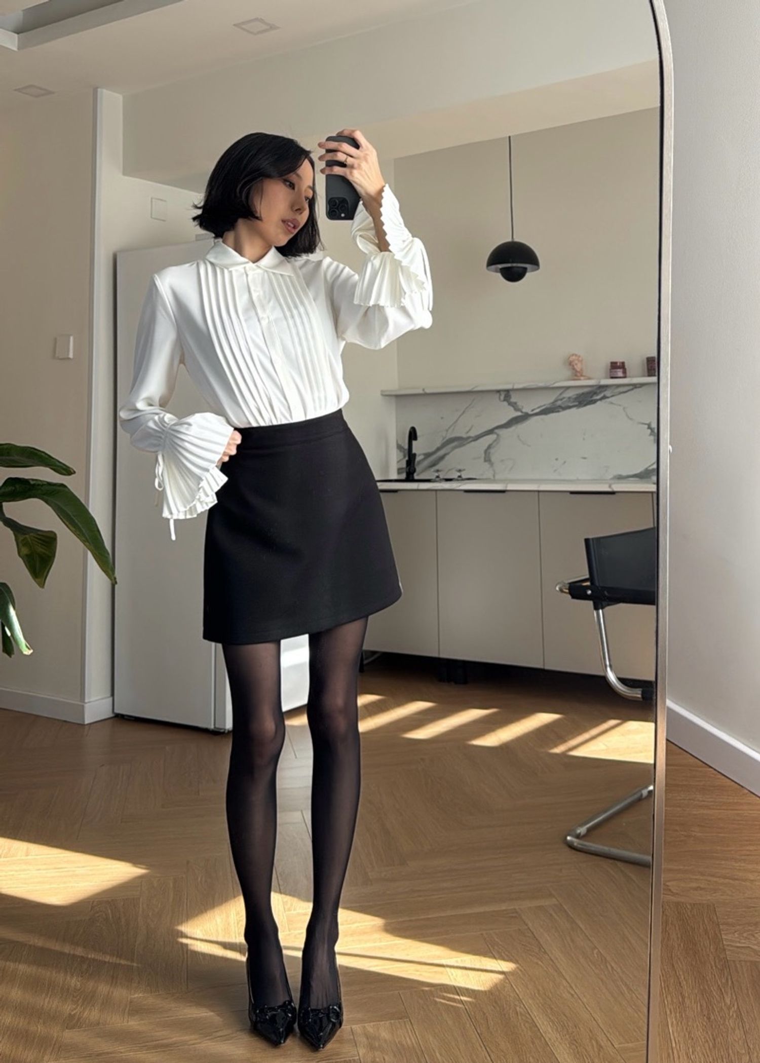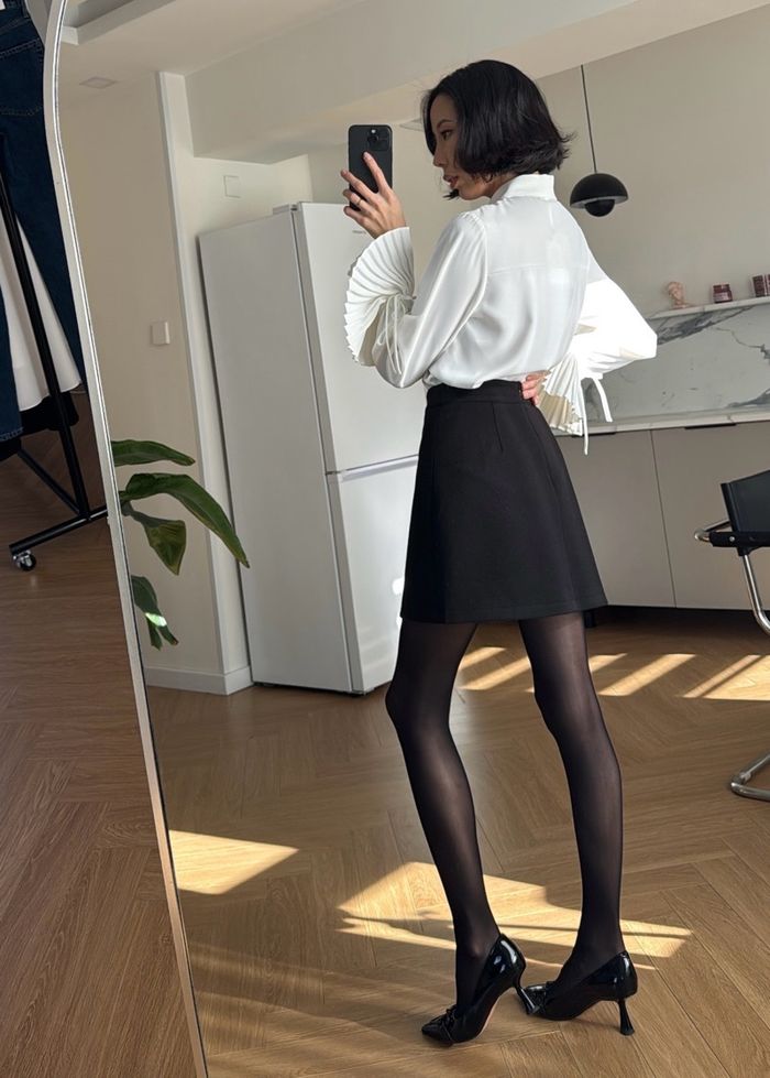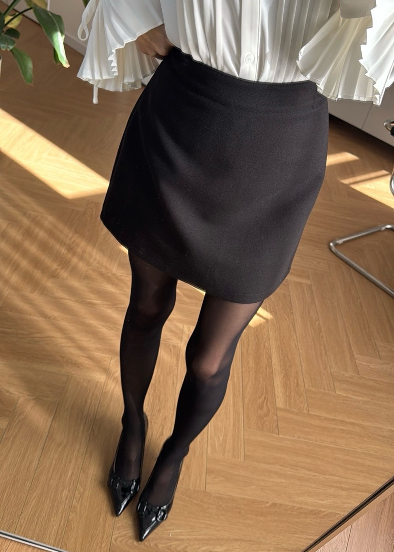 А загвартай, өндөр суудалтай, ноосон юбка. Юбканы нийт урт 41см. Модел 163см, 45кг size S өмссөн.