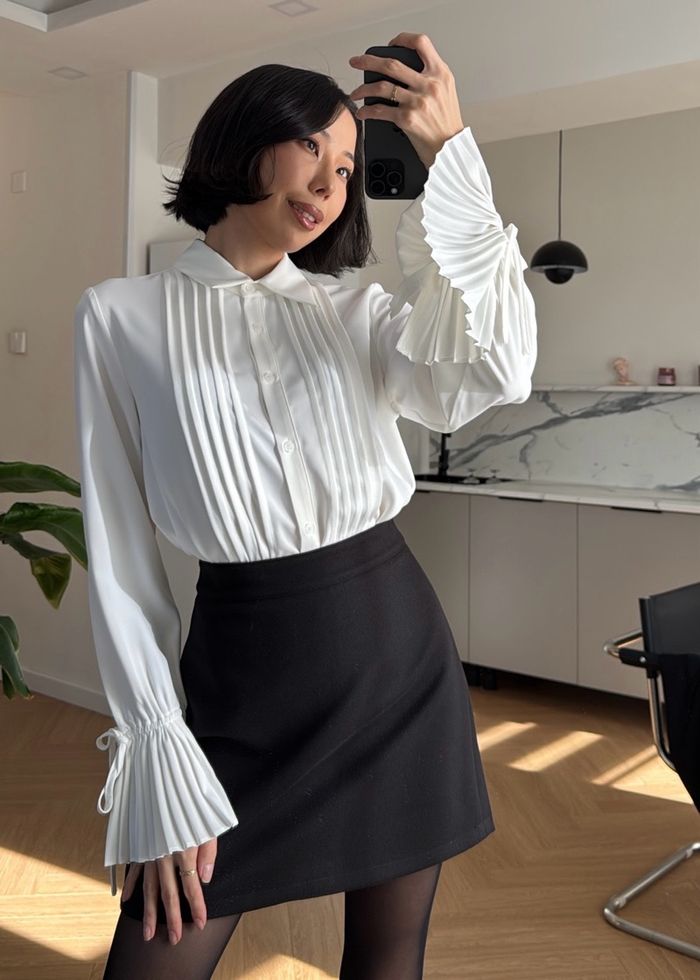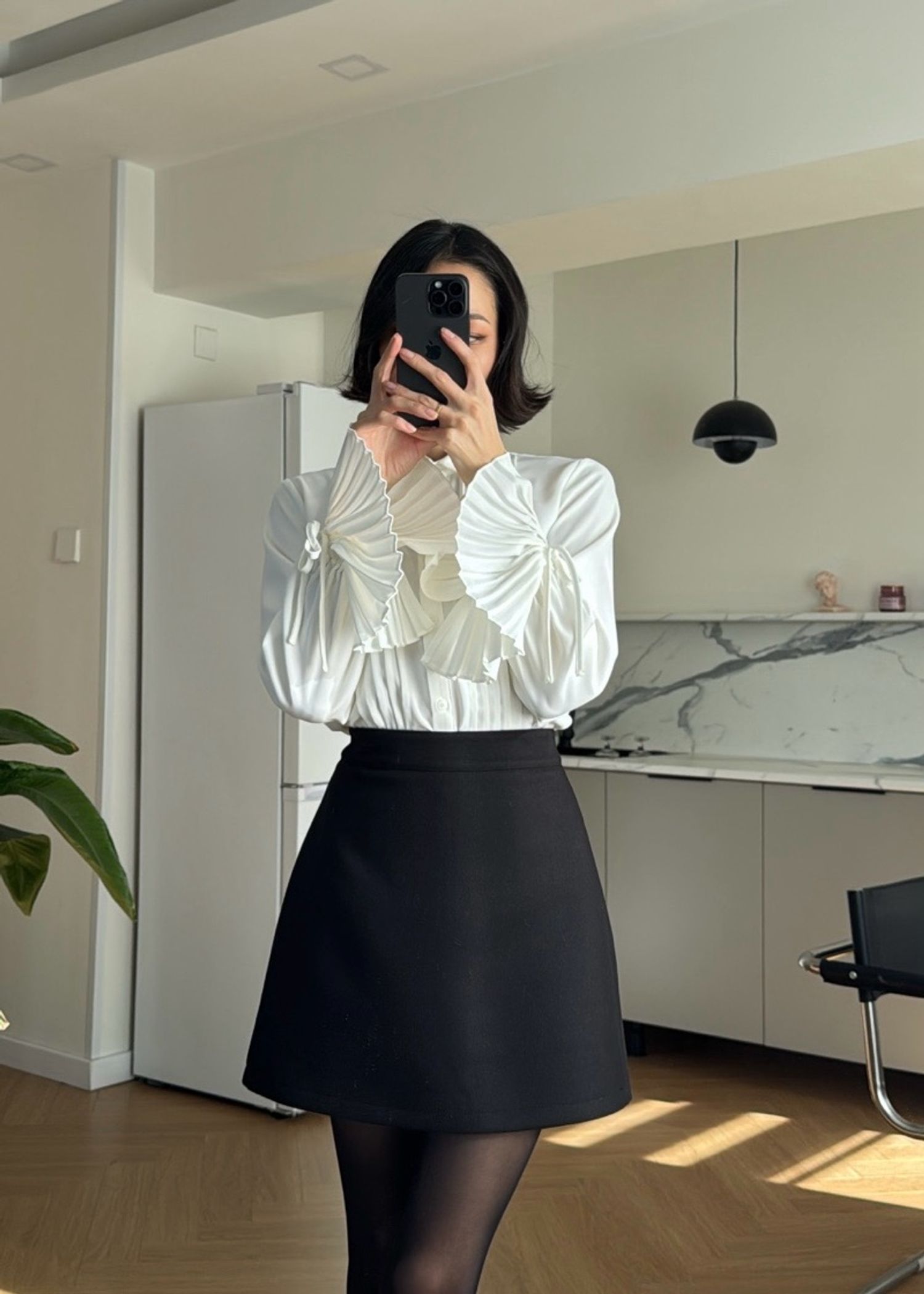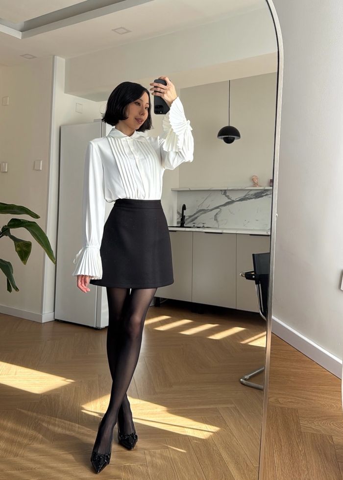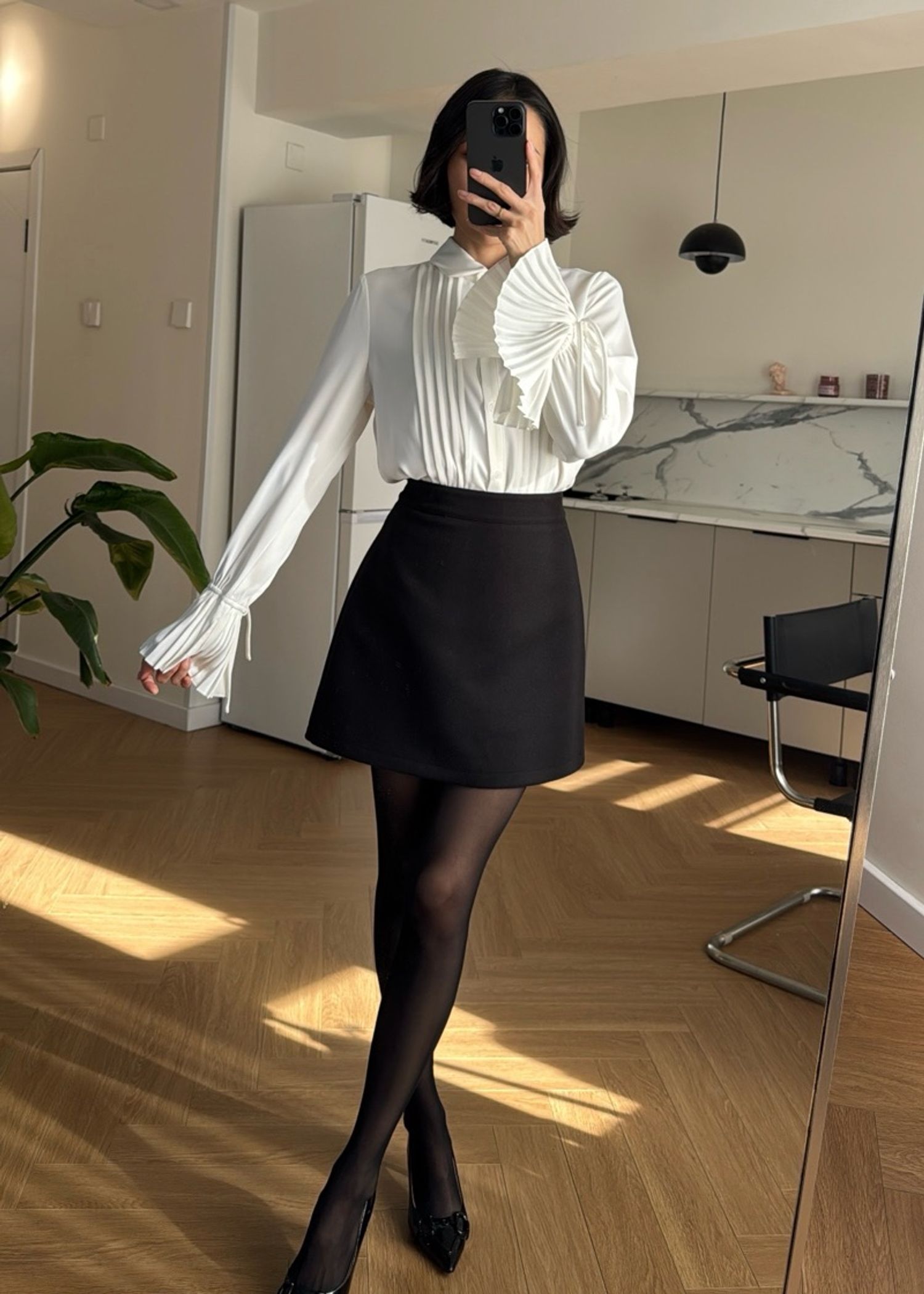 А загвартай, өндөр суудалтай, ноосон юбка. Юбканы нийт урт 41см. Модел 163см, 45кг size S өмссөн.