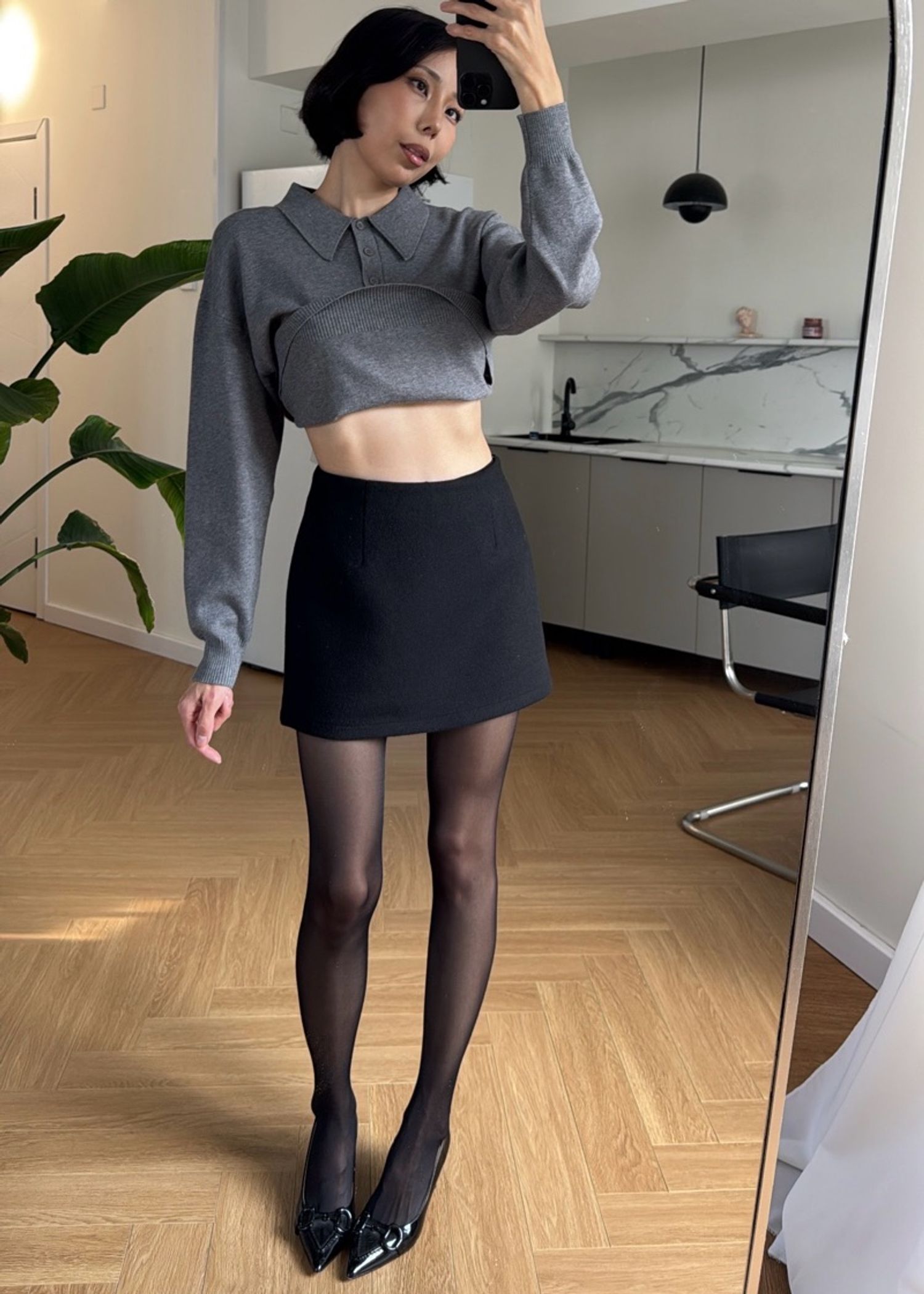 Богино ноосон юбка. Дотроо хамгаалалтын шорттой. Юбканы нийт урт: 35см. Модел 163см, 45кг size S өмссөн.