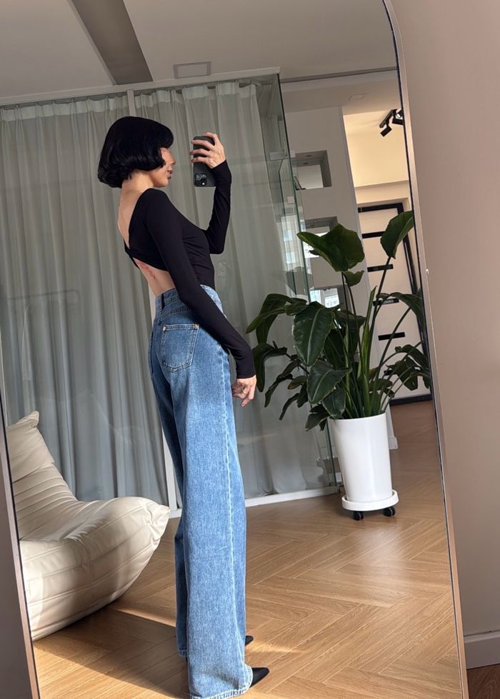 Суналттай, даавуун материалтай боди. Цээж хэсгээрээ хатуулгатай тул толгой гэрэлтэхгүй. Нуруу хэсэг нь гардаг гоё загвартай. Энгэр нь том тул мөрийг нь яаж өмссөн ч болохоор юм байна. Модел 163см, 45кг size S өмссөн.