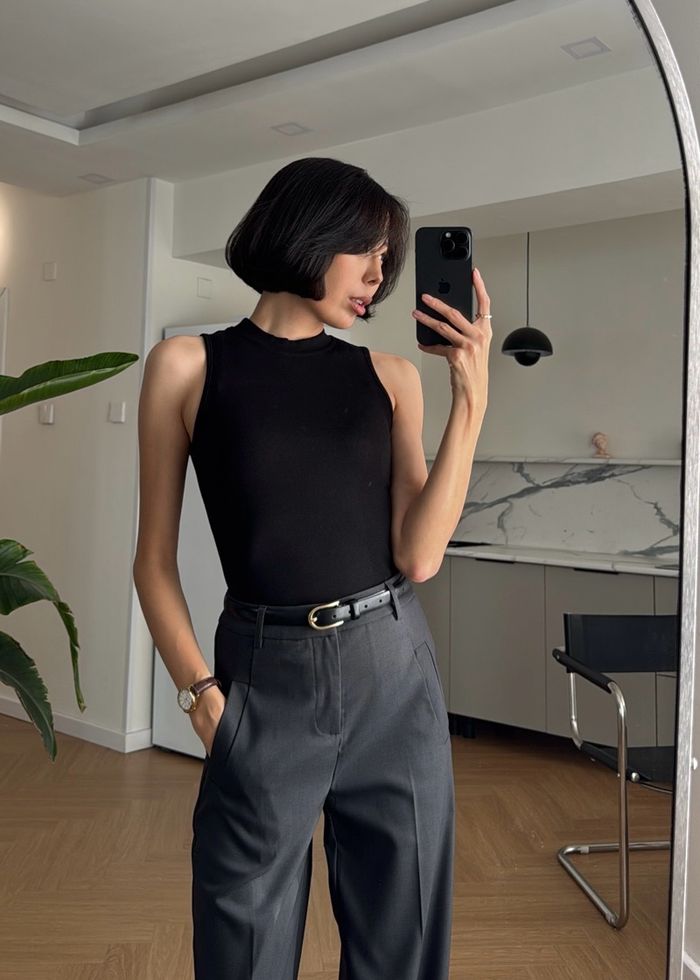 Суналттай, даавуун материалтай топ. Дангаар нь болон пиджак, кардиган дотуур өмсөхөд маш цэвэрхэн харагддаг. Модел 163см, 45кг size S өмссөн.