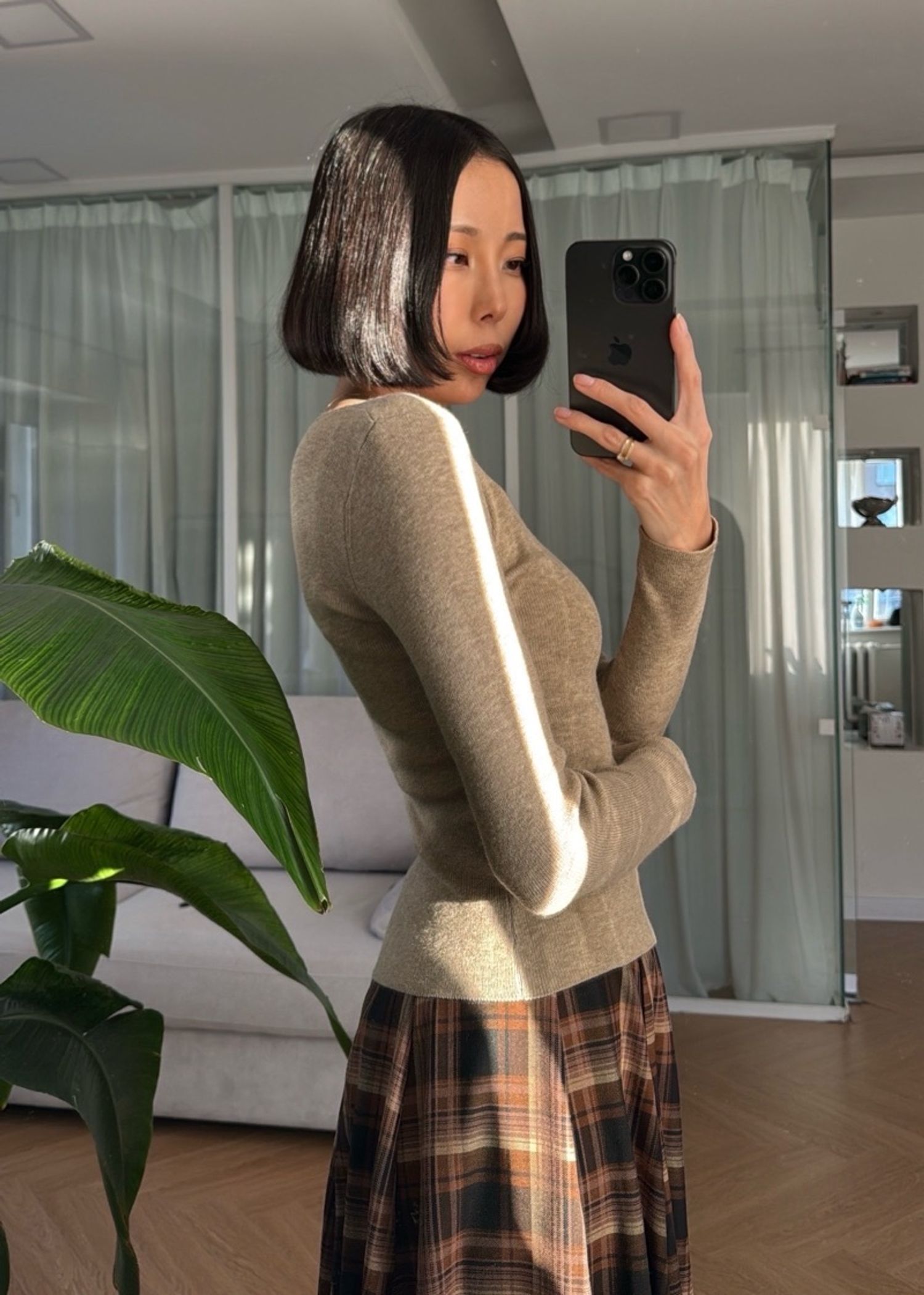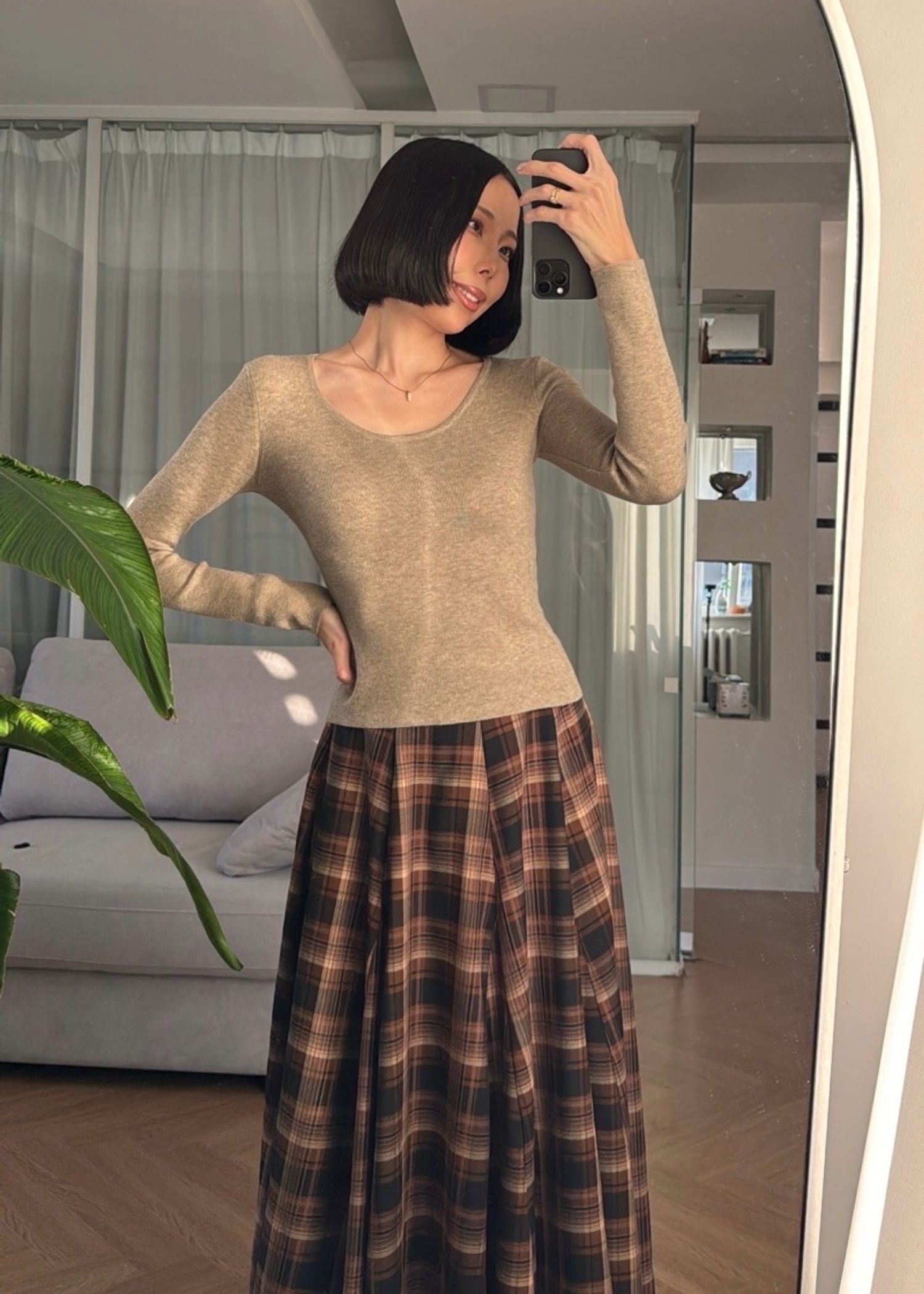 Oatmeal өнгөтэй, биед маш эвтэйхэн зөөлөн ноосон цамц. Бариу загвартай. Lyocell, wool, silk гээд биенд ээлтэй материалтай. Модел 163см, 45кг size S өмссөн.
