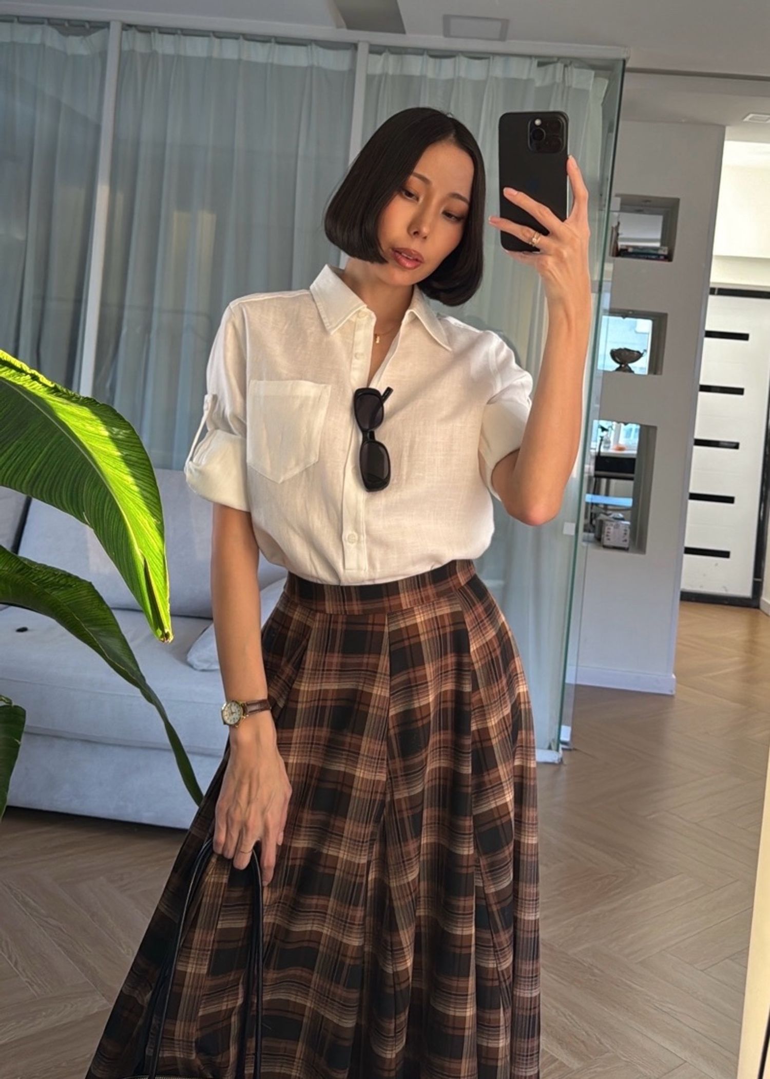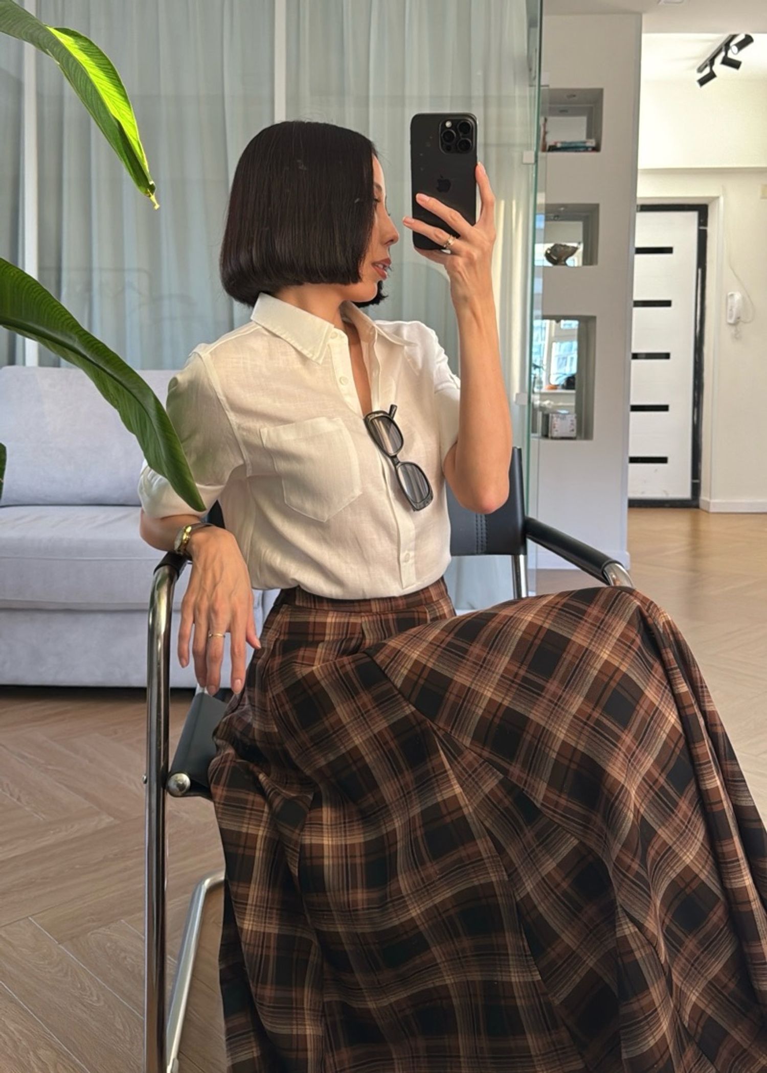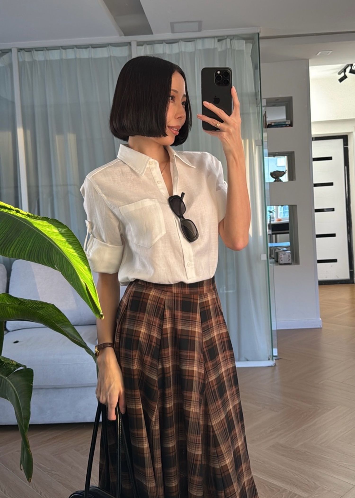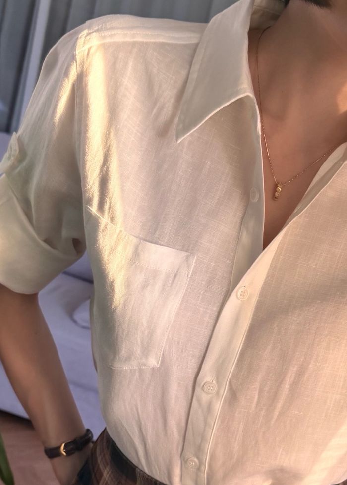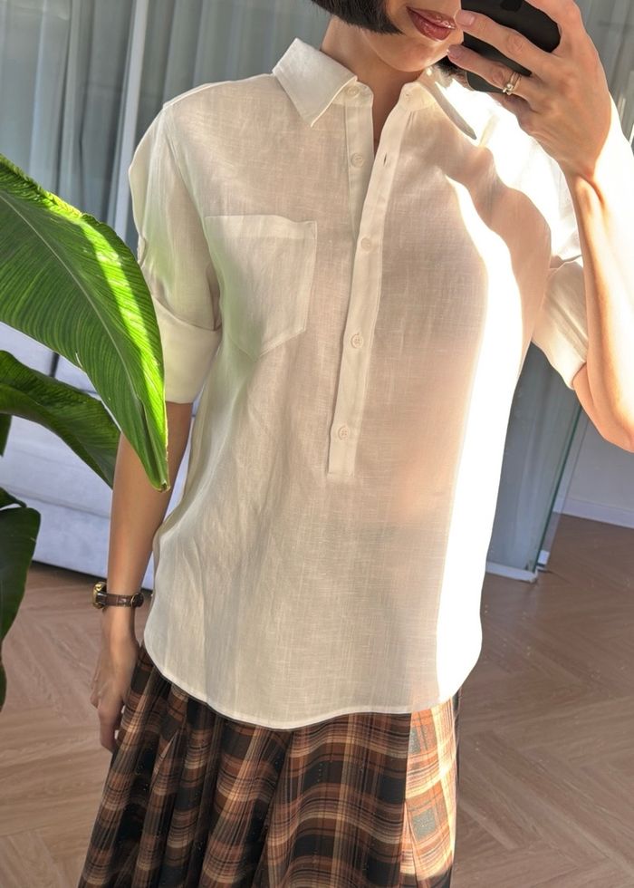 Тал хүртлээ товчтой сорочкан цамц. Материал: 30% linen, 70% lyocell Биенд хамгийн ээлтэй, агаар нэвтүүлдэг даавуун материал. Модел 163см, 45кг size S өмссөн.